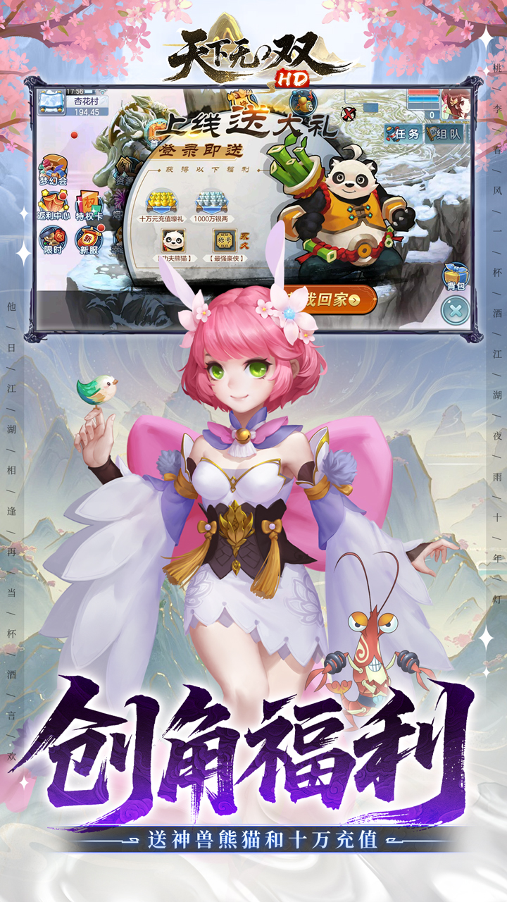 ★无门槛天天领1000代金券,完成日常再送1000! ★完成主线送代金券、限时玩法掉落代金券,充值奖励全白送! ★创角即送5重豪礼,直接天胡开局! ★首日即送豪侠-郭大侠,次日赠送酷炫坐骑-疾风狂啸狼!七日再送万元充值卡! ★千元充值卡天天送,海量元宝花到手软! ★提升等级即可领十万充值以及海量豪侠令,兑换超强伙伴