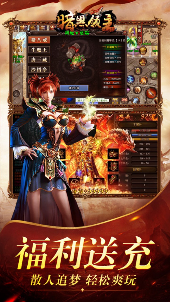 1.新服好礼,登录即享,送足七天 2.猎魔奖励,刷怪即领,超多福利 3.轻松爽玩,装备靠打,回收好礼 4.沙城争霸,兵家必争,越战越强