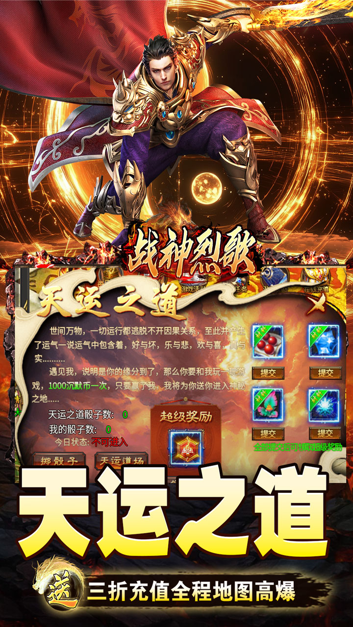 1、每日登录送300代币,礼包充值统统支持,超值福利领不停! 2、充值比例1:100,全场充值打3折,白嫖免费会员! 3、强者之路特色专属剧情,探索剧情有惊喜给你超爽体验! 4、卡牌竞速给你不一样的新鲜,杀怪有奖让你无限抽奖获奖励! 5、每日送300代币,全部白嫖,专属沉默,一切靠打,好玩不累! 6、跨服巴沙克,征战沙城,天运之道,道法自然,阴阳不止,生生不息!
