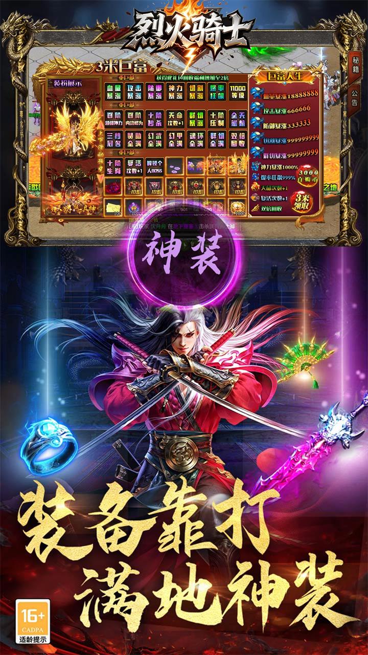 ★必备特权★自动拾取,自动分解,自动回收,仓库背包全满开! ★超强神技★上线就送逐日剑法、开天斩、魔法盾! ★暴力属性★切割暴涨、群切暴涨、外加特殊全套! ★天命之刃★开局送一次随机天赋抽奖,斩杀、鞭尸、复活应有尽有!