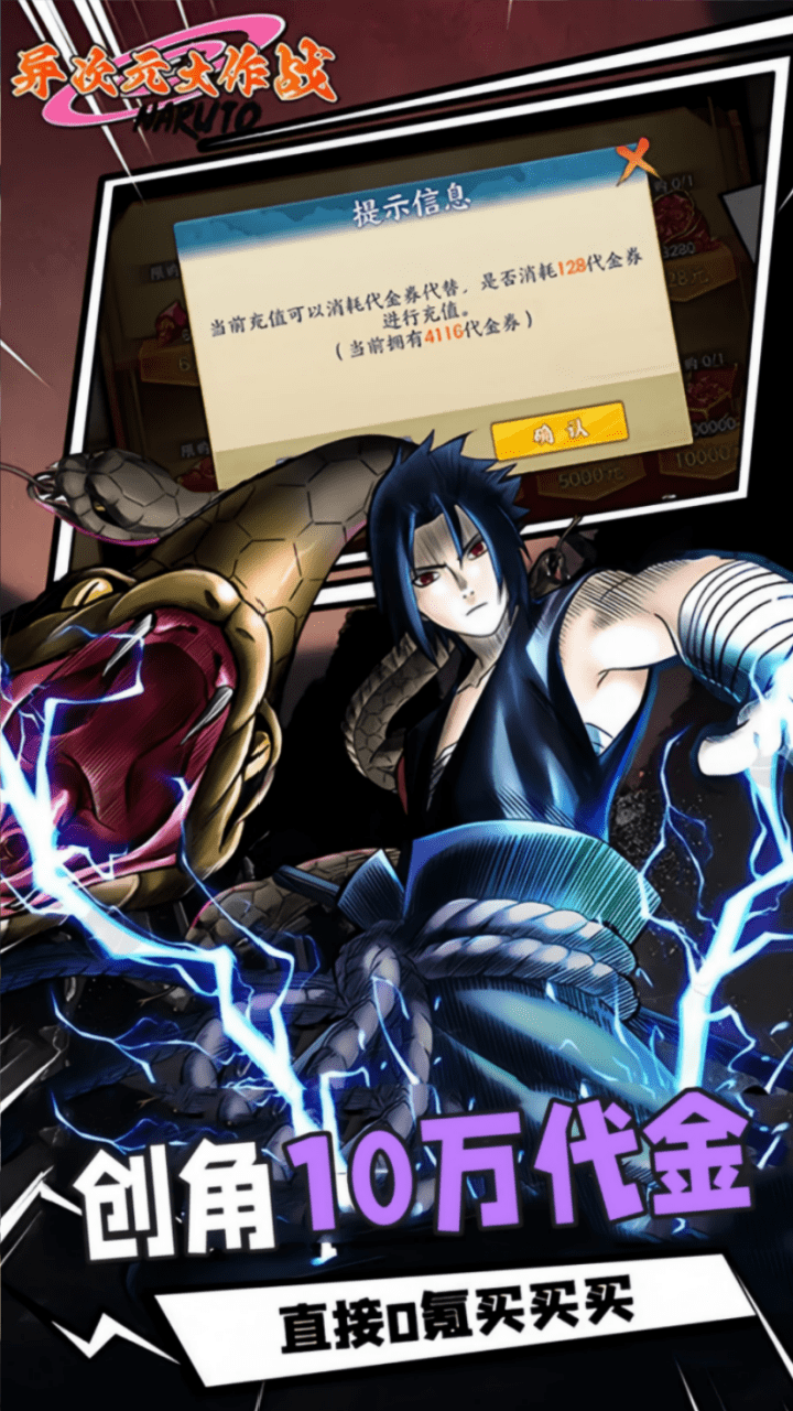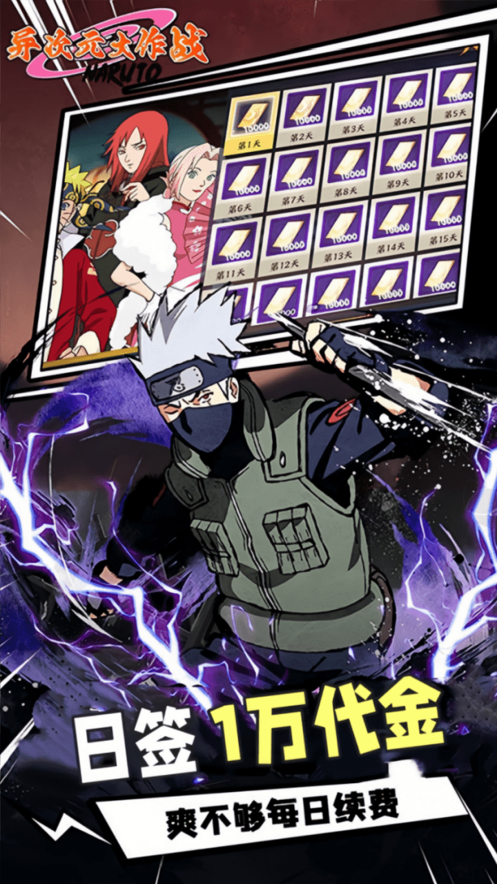 1、首续充值0.05折,充值比例1:10 2、上线赠送10万代金券,神话忍者自选*6 3、每日签到无门槛赠送2万代金券,特权、首充都可参与 4、创新充值卡玩法,附送大量忍币,高价值道具尽情兑换 5、开服签到,强力忍者、战力道具拿到手软