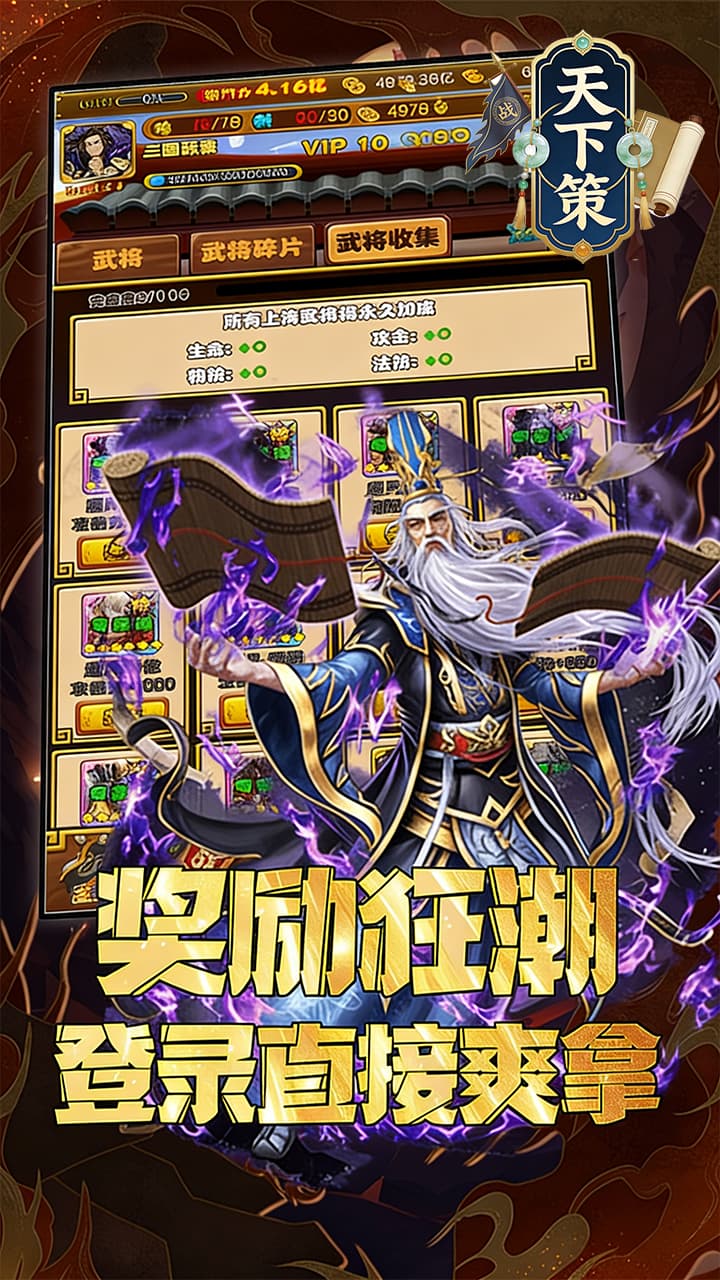 1、破解开局,登录即赠VIP10尊贵特权,附赠1000元额度卡一张、88888元宝、欧皇神券50张、进阶丹5000、1000万铜钱、自选超神将一位,盘古套装自选四件套 2、买断特权:买断心仪武将 3、红包不停歇:升级即可领取万元红包,通关更有万元红包等你拿,万元充值免费放送 4、GM破解神器:拥有GM破解工具,月卡、终生卡轻松白嫖。 5、无限充值特权:无限真充、无限神充 6、专属定制英雄装备:为你量身打造专属英雄与装备。 7、世界BOSS豪礼:挑战世界BOSS,最高可爆出万元充值卡 8、超值特权天天领:享受超值特权,每日领取无限资源。 9、GM币活跃即领:每日上线活跃即可领取GM币。