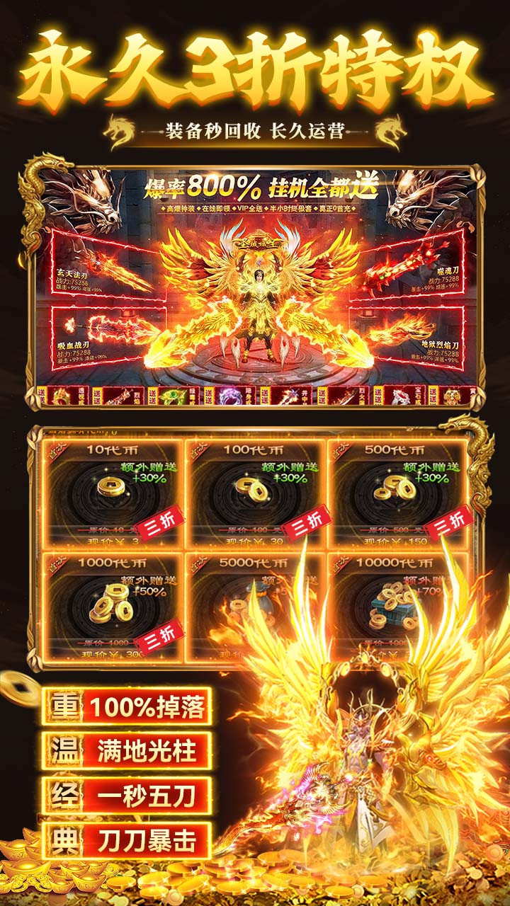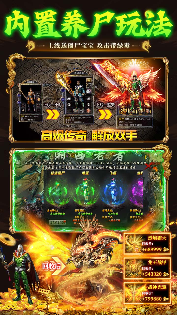 1.上线福利:高手套装、切割+20%、爆率+20%、自动回收/拾取/使用卷 2.免费代币:每日赠送328代币,可囤、可拆分 3.充值折扣:内置三折福利,充值永久三折 4.超爽福利:在线领仙符、免费会员、免费捐献、首爆仙符、海量红包 5.百万红包:副本活动、日常活动、攻城奖励、小怪狂掉、宗门悬赏/商店 6.独特玩法:命格羁绊、财神宝树、湘西老僵、养尸玩法、沙城天赋 7.宗门玩法:宗门大比、宝库、悬赏、庇护、圣体、令牌、锁妖阵