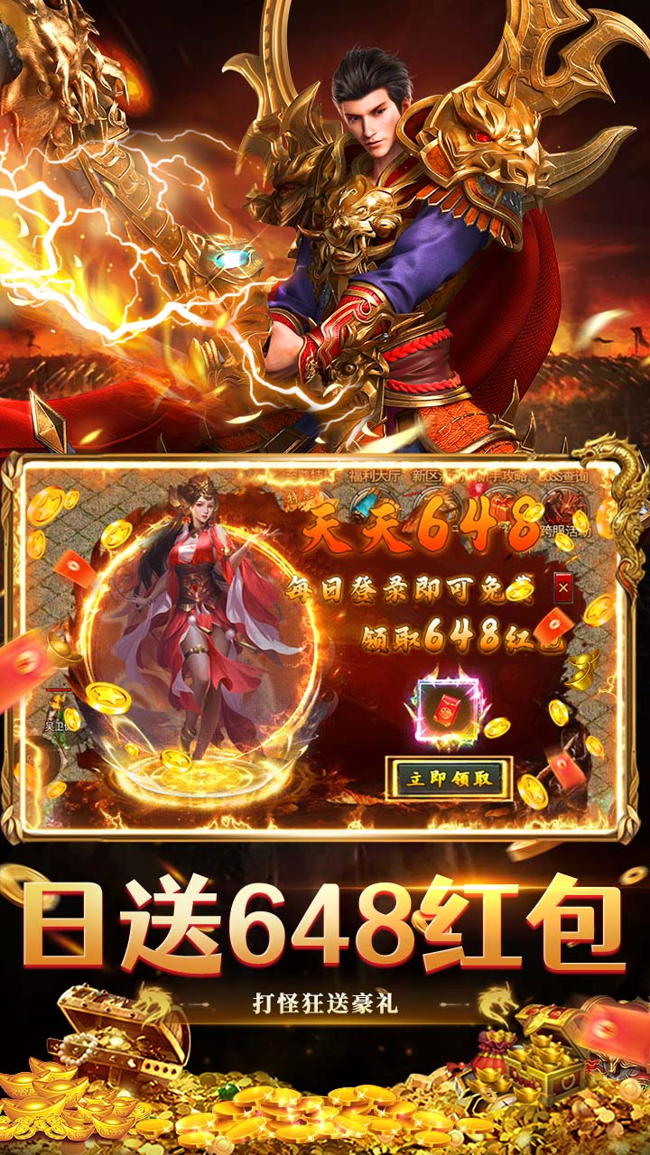 1.648红包:每天登录游戏领取648红包 2.开局福利:开局送328赞助代币,免费激活首充福利 3.免费赞助:免费开通黄金赞助、铂金赞助、钻石赞助、王者赞助 4.免费特权:免费使用装备解绑、自动回收、自动拾取特权 5.十日登录:每天登录领取元宝、书页、灵器灵宝 6.等级奖励:升级领取大量元宝,屠龙武器,黄金斗笠 7.首爆首杀:装备首爆免费领取海量元宝,BOSS首杀获取海量灵符