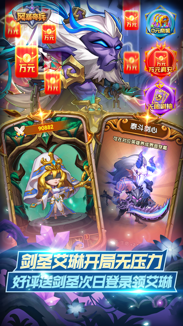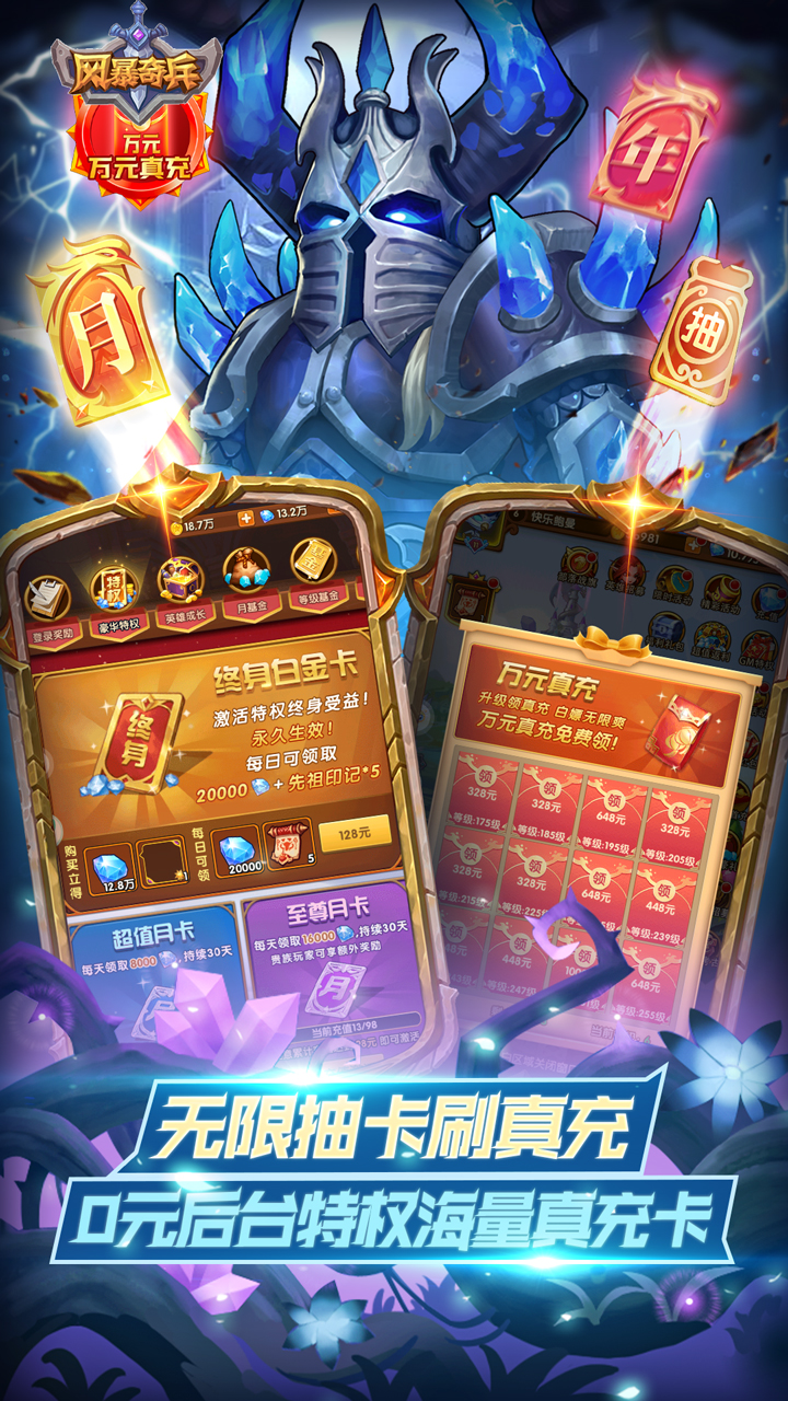 1、全场充值0.05折,充值比例1:1000,爽玩经典魔兽卡牌。 2、首充即送5星坦克牛头酋长,来玩就助你升星,流畅培养单推无压力。 3、5星好评送剑圣,7天登录再送剑圣,不要吝啬你的支持。 4、开局即送VIP10特权、钻石88888和无限连抽宝箱。 5、上万真充升级免费拿,每日签到疯狂送真充,天数越多送礼越大。 6、GM商城0元解锁,每日刷抽刷金币刷养成,前期资源不用愁。