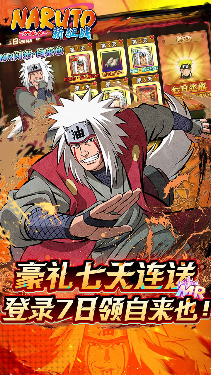 1、次日可领取2000元限时代金券 2、【7日豪礼】超值豪礼免费送,首日即赠自来也·仙人模式 3、【7日达成】连续登录7日可获得神·鸣人·仙人模式 4、【等级豪礼】全民福利大放送,升级即赠超多充值卡