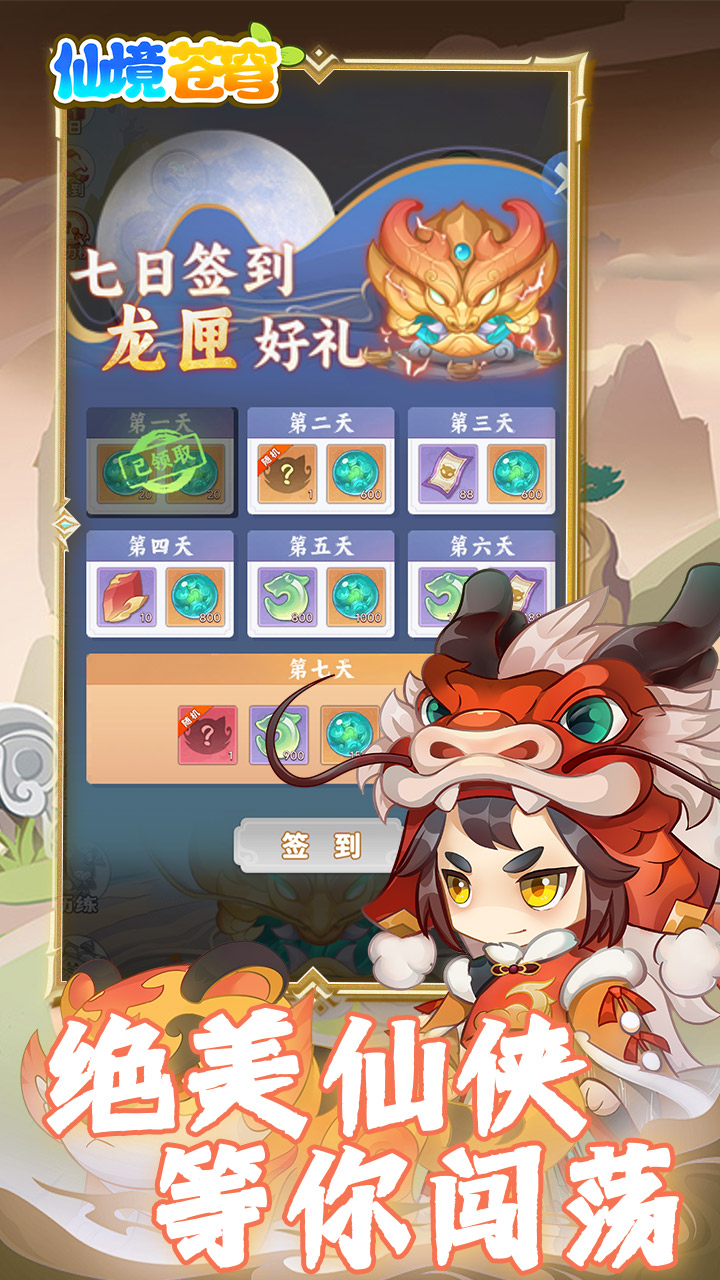 1、免费版:每天内置送6480不限时代金券 2、7日签到送至尊品质装备