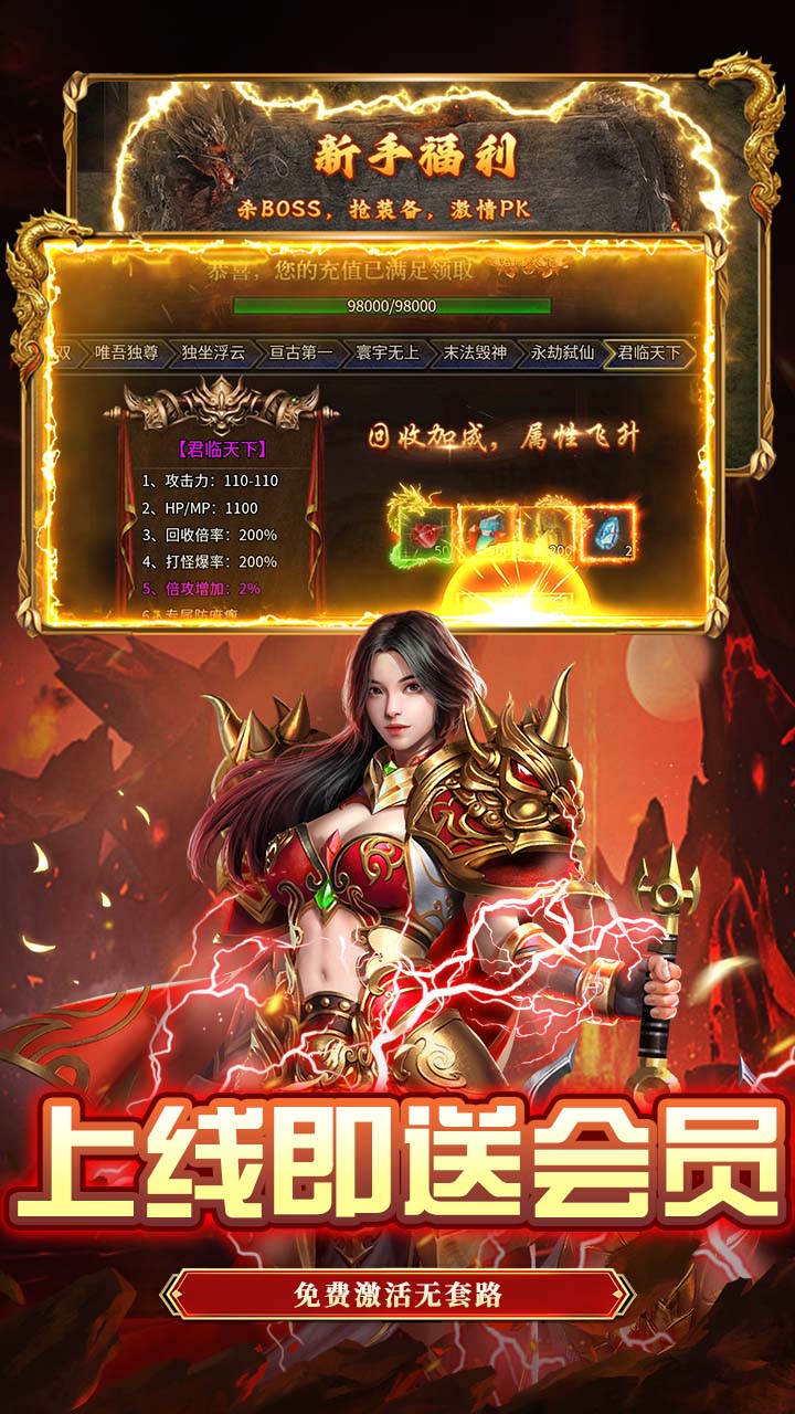 1.创角即送拾取小精灵,绝版称号。 2.天天赠送328代币。 3.完成七日成就获取大量材料道具。 4.在线可获取海量元宝和材料。 5.顶级赞助免费赠送。 6.每日每周活跃可获取海量元宝灵符。 7.个人BOSS掉落极品神装。