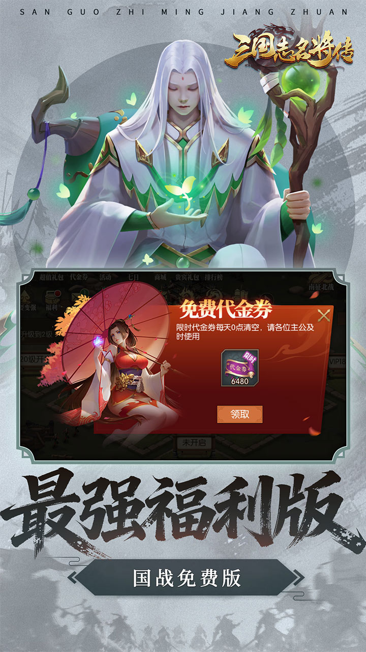 ★全新经典国战,版本尊享君王特权,收益直接翻倍! ★七日登录送武圣关羽、赤兔,助力主公纵横战场 ★0.1折每日登陆领6480代金券 ★0.1折爽充开启!首充仅需0.06元即可获取强力输出孙尚香 ★全新万人国战沙场已就绪,顶级道具任你攫取,全新版本福利多多