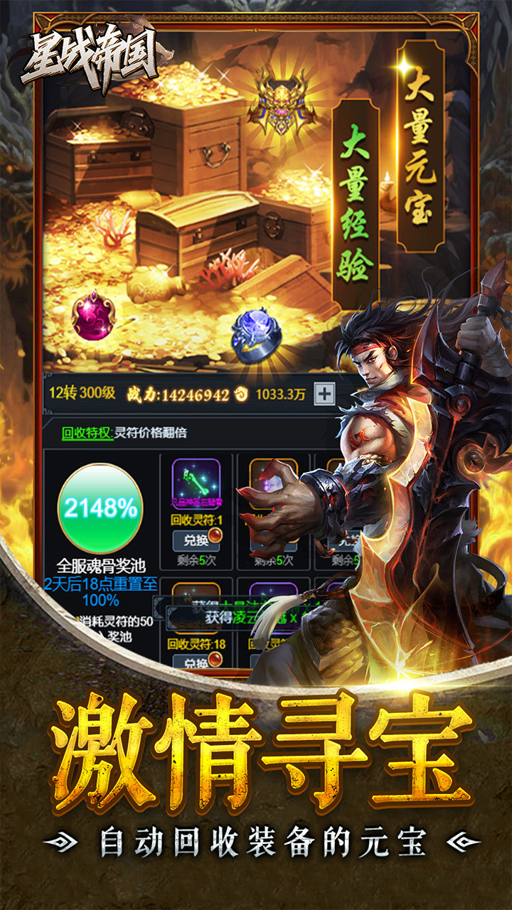 1、首充续充直购特权统统1折 2、登录即送代金劵*648,次日起每日无条件领取代金劵*200,可用于游戏内原价消费 3、连续签到 7 天获得稀有装备、高级技能书、元宝等丰厚奖励 4、离线自动打怪,上线领取经验、铜钱、装备等奖励,轻松升级不肝 5、首充福利小额首充即可获得强力武器、专属头像框,灵宠以及稀有翅膀 6、多余装备可回收兑换元宝,"一夜暴富不是梦"