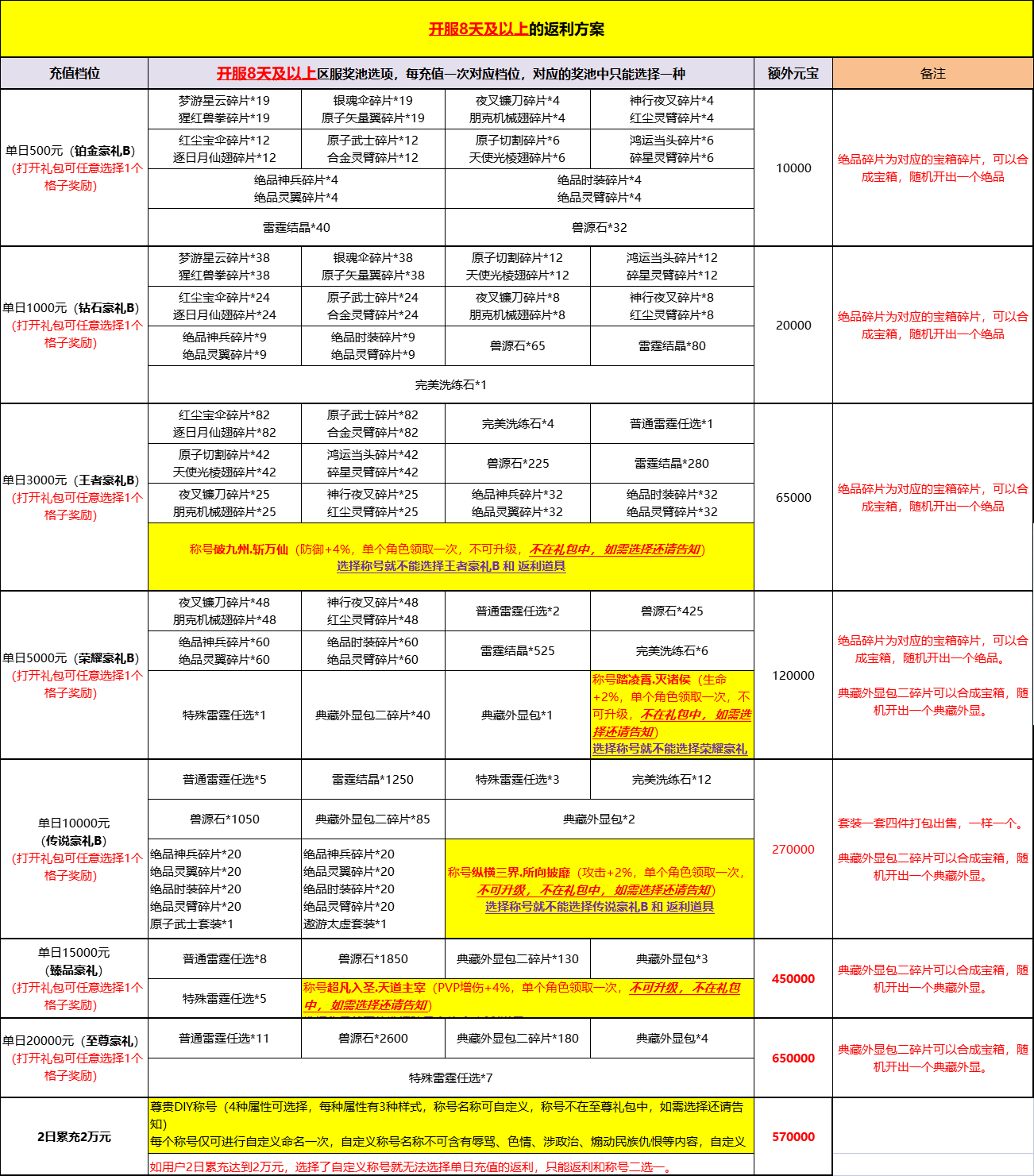 参与条件:达到VIP标准且已经登记的超级VIP玩家在开服7天后再充值达到对应条件可以参与